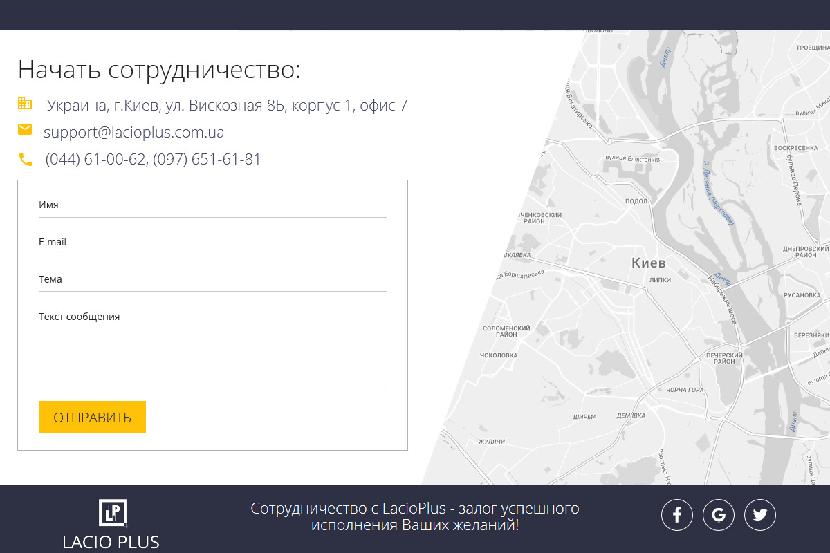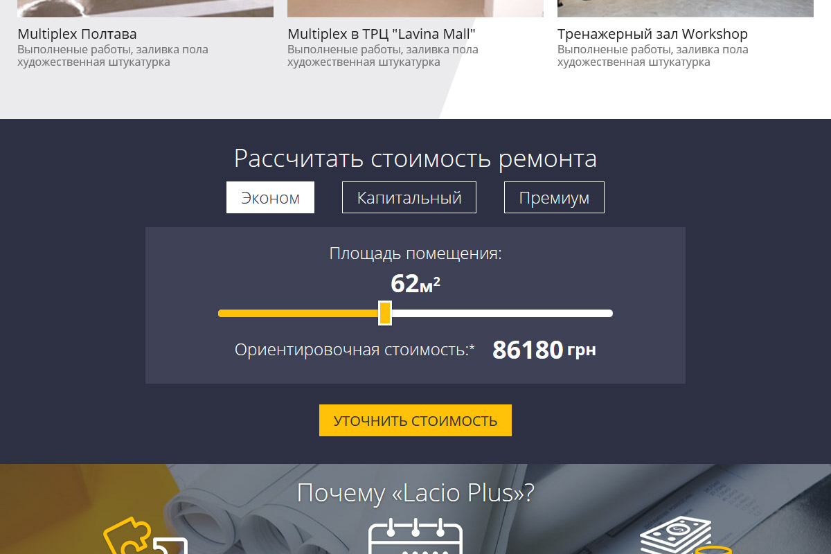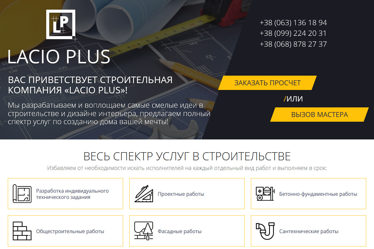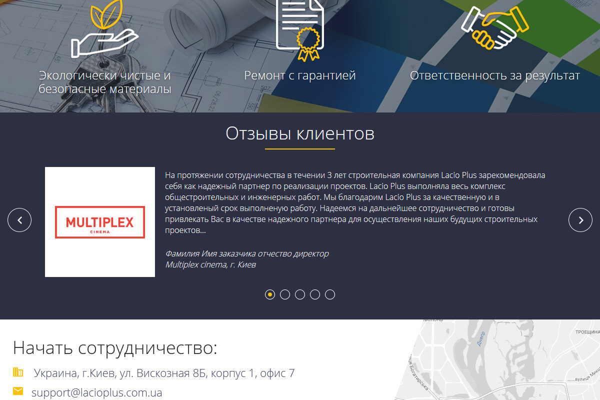 Клієнт надав всі тексти, які необхідно було розмістити на сайті, фото прикладів своїх робіт, прайс із цінами, документи з ліцензіями.
