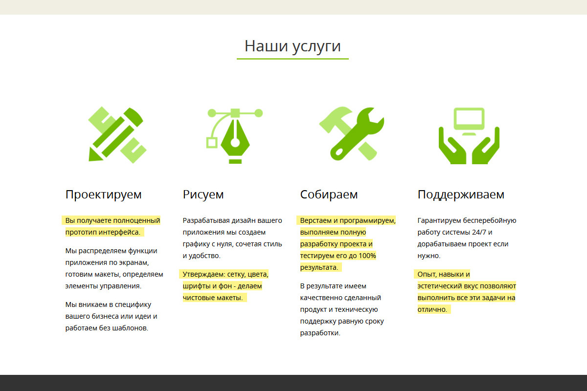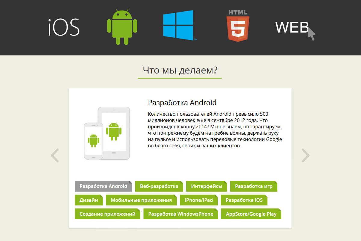 - Розділ "що ми робимо" перетворюється в слайдер свайпами.